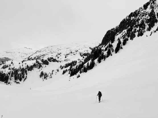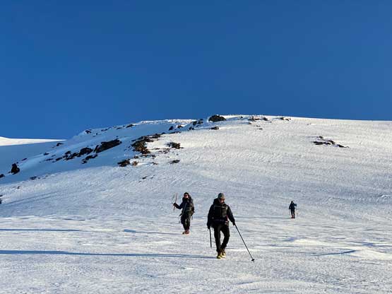 Alex and Phil exiting the chute. As you can see the terrain is big here.