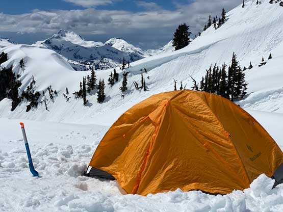 Our campsite with “Stoney Peak” behind. Time to head up Mt. Glendinning