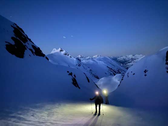 Pre-dawn start heading up the gully onto Terrarosa Glacier