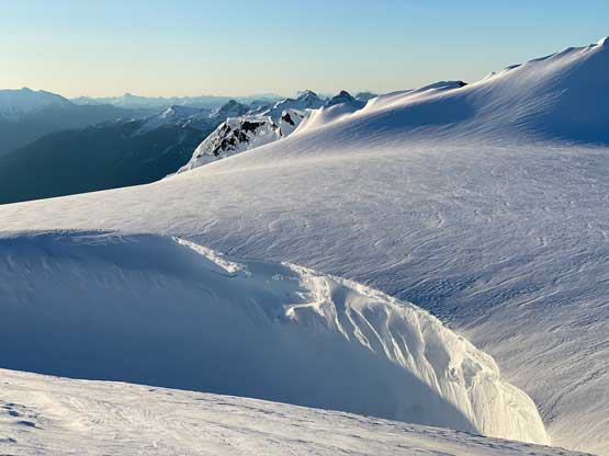 This wind scoop at the base of Ember Mountain is at least 20-30 m deep…
