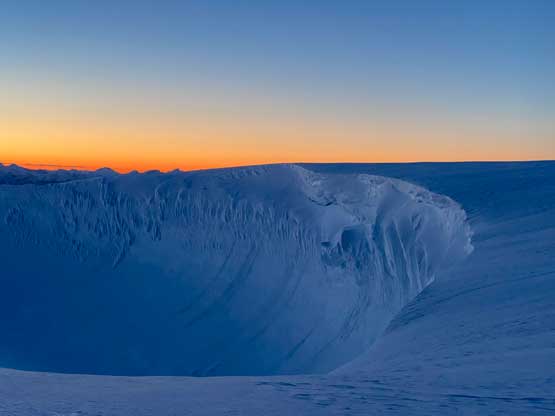 This wind scoop at the base of Ember Mountain is at least 20-30 m deep…
