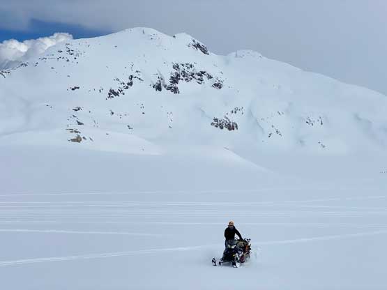 Not to be confused with Famine Mountain near Lizzie Creek cabin also in the vicinity of Pemberton that I ascended in 2015 on skis, this one locates in the heart of Pemby Icecap and is even more remote. The name “Famine Peak” is unofficial but this peak boasts over 300 m prominence making it one of the more significant summits on the icecap. The peak looks rocky and rugged and the route information was non-existing on the internet even though snowmobilers regularly sled all the way to the base of the summit block. The summit would be too steep to ski, so I do believe that it’s a rarely climbed peak.