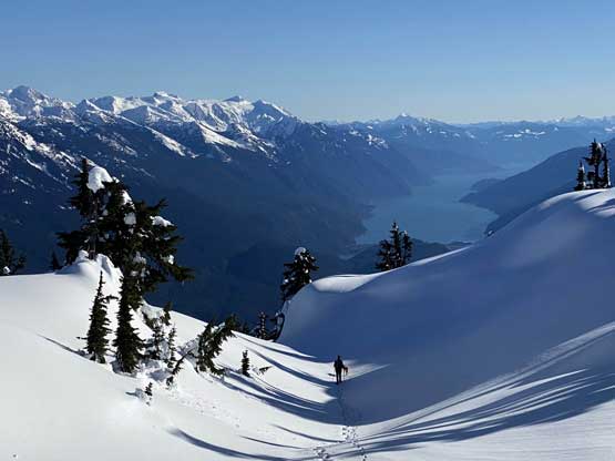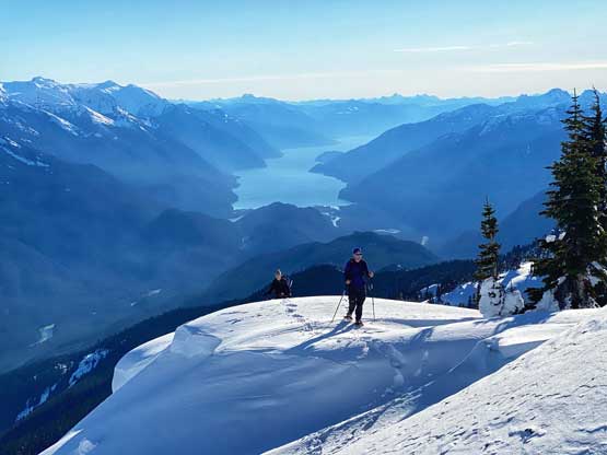 Matt and Iliya traversing the summit ridge with Harrison Lake behind