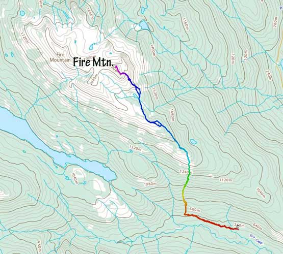 Matt Juhasz had been putting some hard man’s work on the list of “SW BC Prominent Peaks” including several forays into the area to just check out the accesses and one failed attempt on Fire Mountain a month ago. When Matt invited me to join his “Midnight Crew” for Fire Mountain on this past Friday I instantly agreed. The weather looked stellar and the avalanche hazards had dropped to the lowest so far in this season. I did have to work on Friday, but given the golden window I just had to take the day off. The opportunity cost might be several hundred dollars but Fire Mountain was worth the bail. The only beta we had was Matt’s previous attempt so there wasn’t really a “proved route” on this mountain. Matt proposed another (longer) west side approach by crossing the frozen Fire Lake but I voted for repeating his previous attempt’s southern approach in favour for a more direct attack. The forest might be ridiculously steep but the thick rain crust we had been having recently would greatly ease any difficulty in the forest.