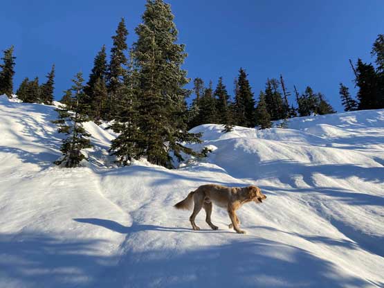 Iliya plodding up with “Speke Peak” on Nahatlatch/Lillooet Divide