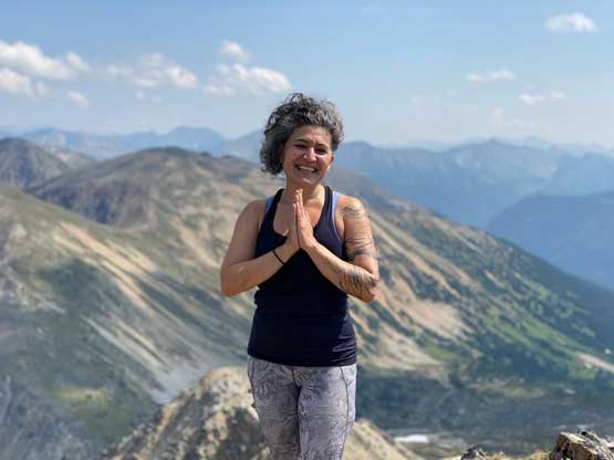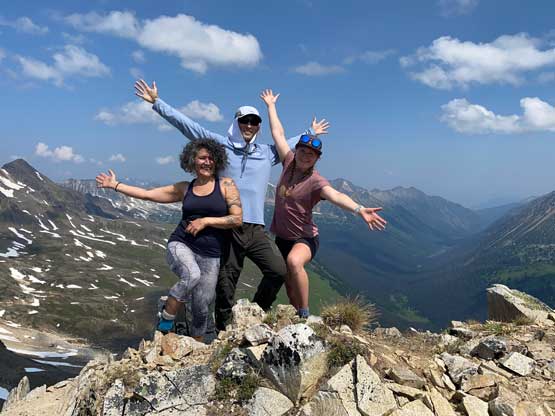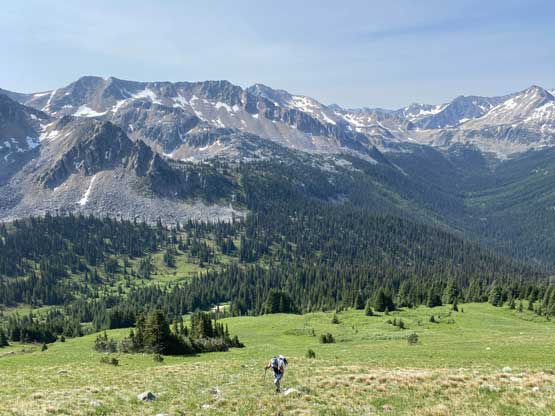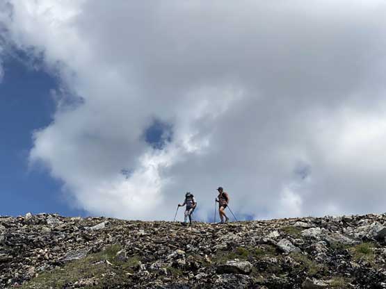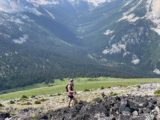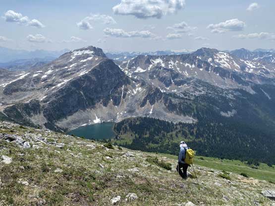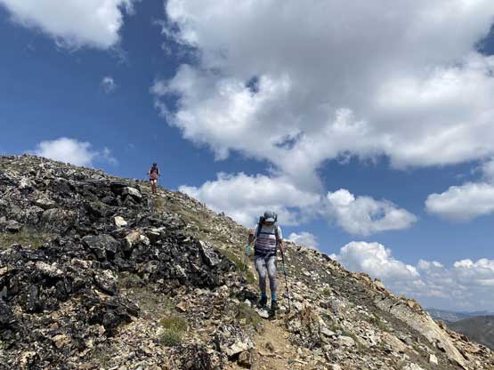 Christine approaching the final summit ridge with “Gotcha Peak” behind