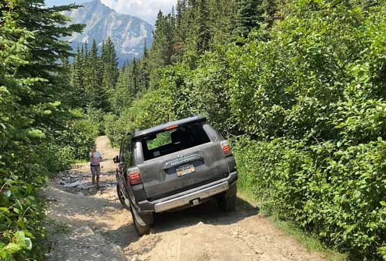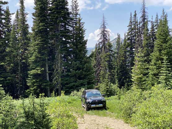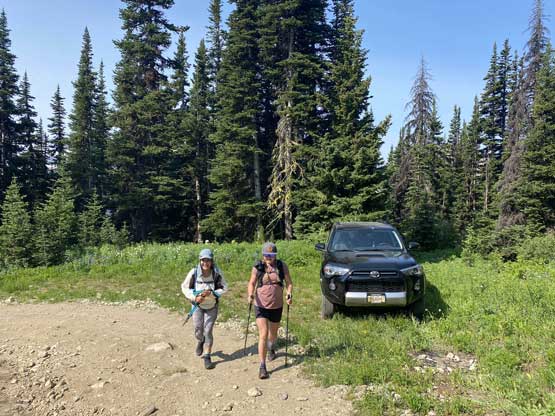 I had not started packing nor shopped food for the Wahoo Tower trip at all so I must get back home in a reasonable hour and to guarantee that Christine and I decided to leave Lower Mainland at 5 AM, and Squamish by 6 AM. By coincidence both Christine and Senay drive 4Runner and I have a Taco so here’s also a Toyota off-roading team. Two hours later we had turned onto Blowdown FSR. The main FSR was not too bad to drive on and we even got a wolf sighting. I thought we would start at the spot where everyone else opted to park, but once there Christine decided to push further. I wasn’t sure about that given that she only had stock tires on the 4Runner but the objective for me on this day was to hike as less as possible to conserve energy, so agreed. The road towards the pass was actually not too bad but the pin-stripping was insane. There were a few rough sections that Senay offered to get out and help but none proved to be problematic. For Gott Peak we did not have to drive all the way to the pass and instead, after a short switchback on the road we parked at a convenient turn-around spot.