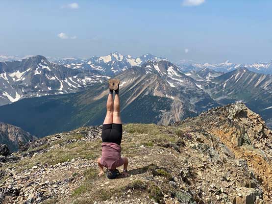 Christine approaching the final summit ridge with “Gotcha Peak” behind