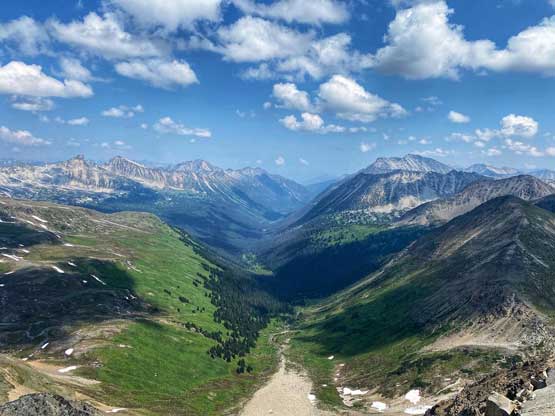 There’s very little change in scenery as we grunted up this never-ending slope, but the view looking back at the small lake under “Gotcha Peak” kept improving. The mosquitoes was rather horrendous and that kept us moving at a quick pace. About halfway up Christine dropped her camera and after about 15 minutes of frustrating search we decided to worry about that on the descent. About 3/4 of the way up the terrain finally changed to talus and scree and a short while later we popped onto the summit ridge with the summit only two minutes away. Prior to this trip I did most, if not all of my Duffey area peaks in winter conditions so it’s great to see what this area looks like without snow.