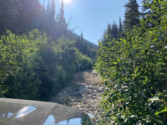 I had not started packing nor shopped food for the Wahoo Tower trip at all so I must get back home in a reasonable hour and to guarantee that Christine and I decided to leave Lower Mainland at 5 AM, and Squamish by 6 AM. By coincidence both Christine and Senay drive 4Runner and I have a Taco so here’s also a Toyota off-roading team. Two hours later we had turned onto Blowdown FSR. The main FSR was not too bad to drive on and we even got a wolf sighting. I thought we would start at the spot where everyone else opted to park, but once there Christine decided to push further. I wasn’t sure about that given that she only had stock tires on the 4Runner but the objective for me on this day was to hike as less as possible to conserve energy, so agreed. The road towards the pass was actually not too bad but the pin-stripping was insane. There were a few rough sections that Senay offered to get out and help but none proved to be problematic. For Gott Peak we did not have to drive all the way to the pass and instead, after a short switchback on the road we parked at a convenient turn-around spot.