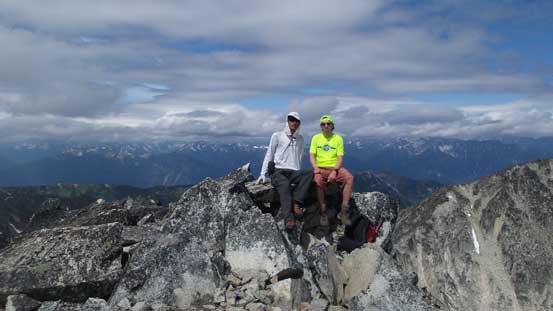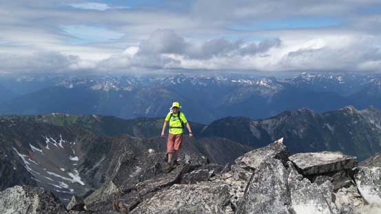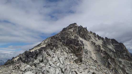 And then up the NW Ridge of Linus Mountain we went. The scrambling was mostly Class 2 although by sticking close to the ridge crest we had some fun Class 3 sections. The boulders were quite loose at places but overall the quality was acceptable. Eventually we still had to detour a bit to the climber’s right side but never far from the crest. Wherever possible we just attacked the ridge head-on for more solid rocks until the summit.
