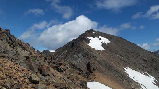 And then up the NW Ridge of Linus Mountain we went. The scrambling was mostly Class 2 although by sticking close to the ridge crest we had some fun Class 3 sections. The boulders were quite loose at places but overall the quality was acceptable. Eventually we still had to detour a bit to the climber’s right side but never far from the crest. Wherever possible we just attacked the ridge head-on for more solid rocks until the summit.