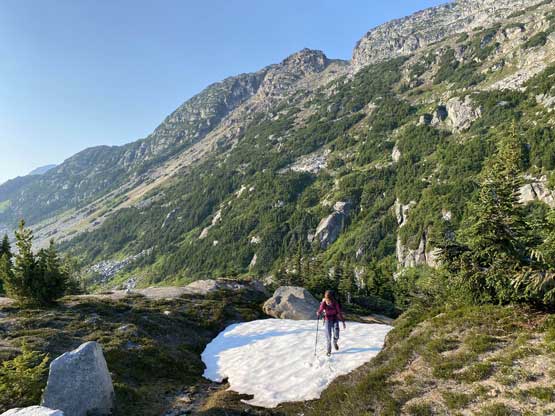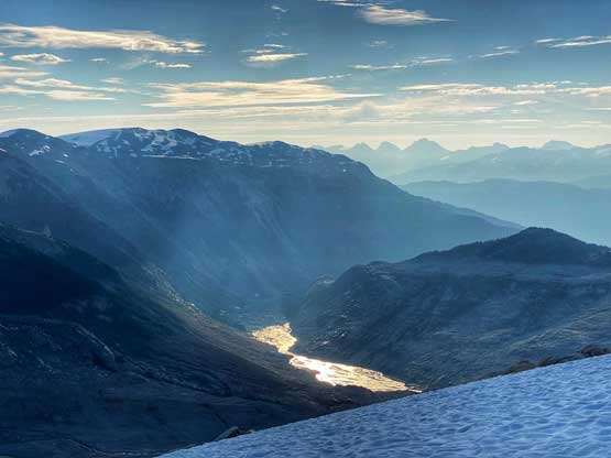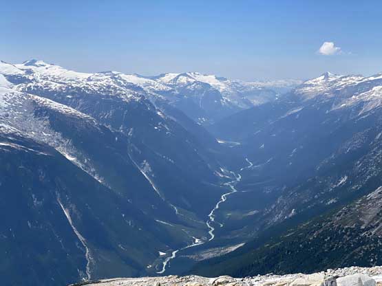 Descending frustratingly for 350 m but the views into Elaho River was gorgeous