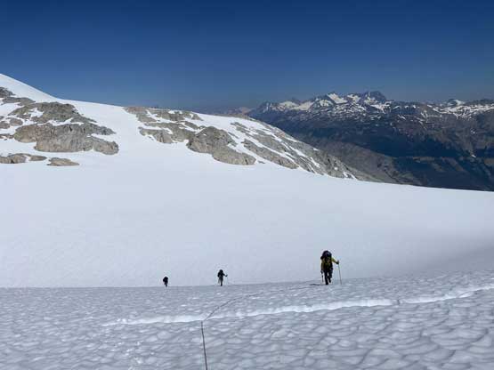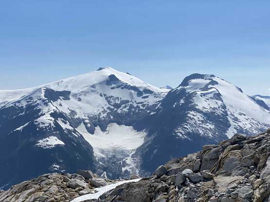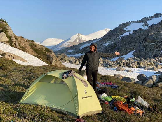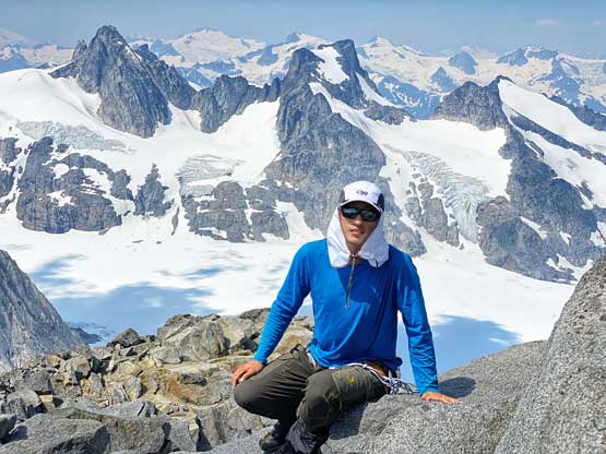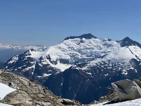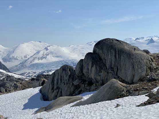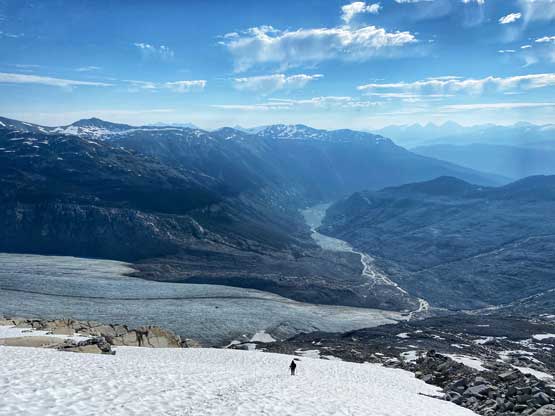 Rob with Elaho Glacier behind. This was a memorable area for sure