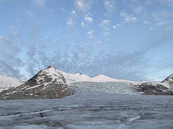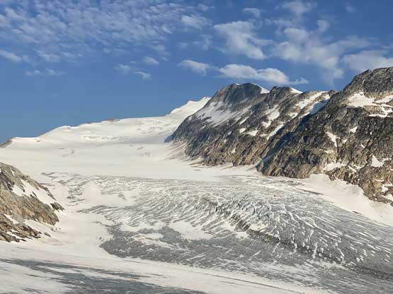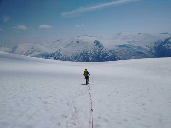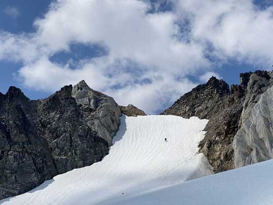 At the Peaks A/B saddle, looking at the north glacier of Mt. Ralph