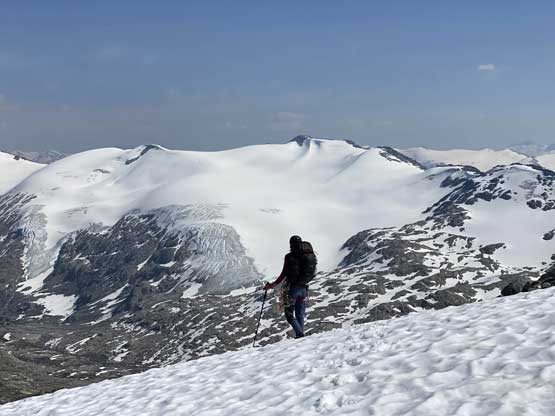 Jason leading ahead for the wrong route plodding up this prow of snow