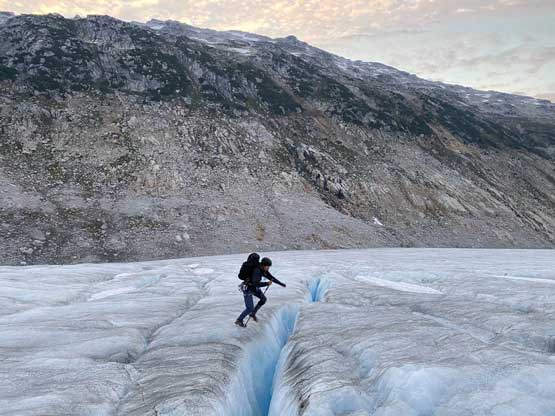 Ellie and Jason hopping onto ice. The stoke’s still high