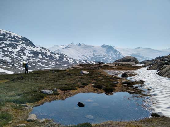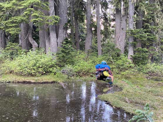 Jason trying to drink straight from this stagnant tarn… Or not…