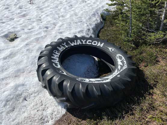 I estimated a 6+ hour drive to the trail-head so we agreed to leave White Rock at 4:30 am. The long and exhausting drive to Lillooet went by uneventfully and from there onward it was all new ground for me. We took the Bridge River Road towards Gold Bridge but unlike advertised elsewhere, this road isn’t entirely paved. We encountered two very long stretches of gravel and even without the gravel sections this road could not be driven too fast due to infinitely many tight turns and blind corners. At the east end of Carpenter Lake we took the left turn crossing the dam and then a cool tunnel and the drive up onto Mission Pass was quite easy. We then took the narrow spur road following the powerline on Mission Ridge. This road was easy for my Tacoma (now with all terrain tires) but I can see why those without 4×4 ended up turning around, as the grade was damn steep and the surface was loose and sandy at places. We drove all the way to the trail-head linking up several critical turns using the Gaia GPS app on my phone.