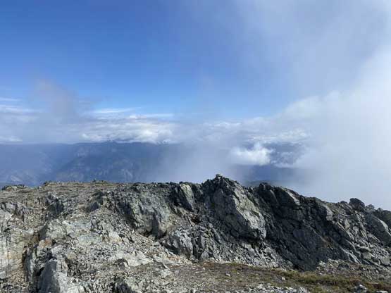 There’s one huge chuck of limestone that we wondered about its origin. I liked limestone way more than granite so couldn’t help but to play with it. The rock texture offered so much greater grip. After the fun we descended into the final saddle and easily scrambled to the summit followed the path of the least resistance. We lingered on the summit for over an hour for simple reason of why-not.