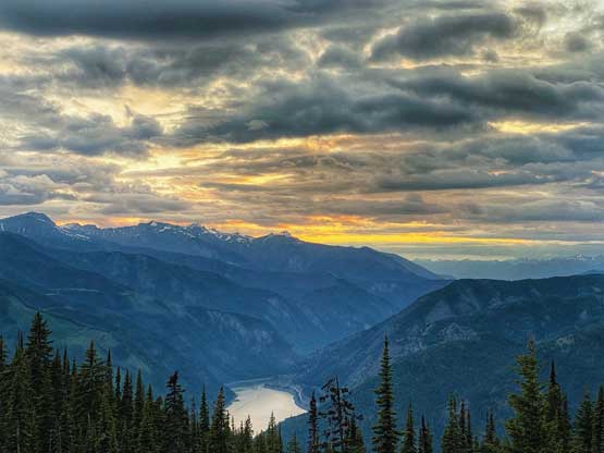 We then drove down the powerline road hoping for an ideal car-camping spot with some views into Seton Lake. We found one nice spot but it’s directly under the high voltage powerlines that constantly made some electric noises. None of us liked the sound of it, so after cooking dinner and waiting for the sunset we resumed the drive down. Our objective for the following day would be Nosebag Mountain.
