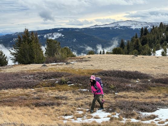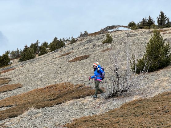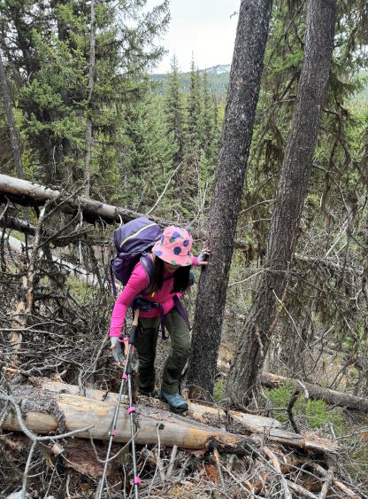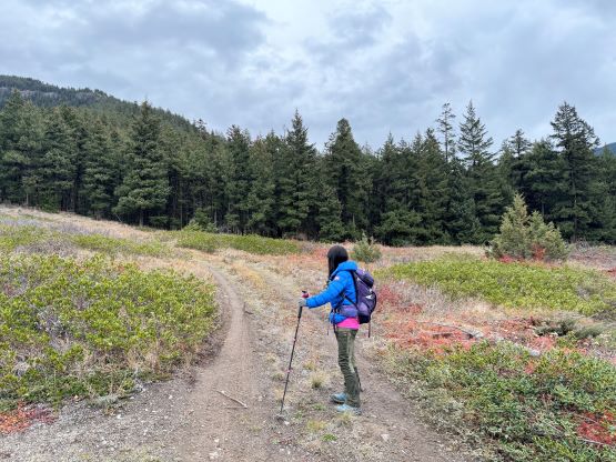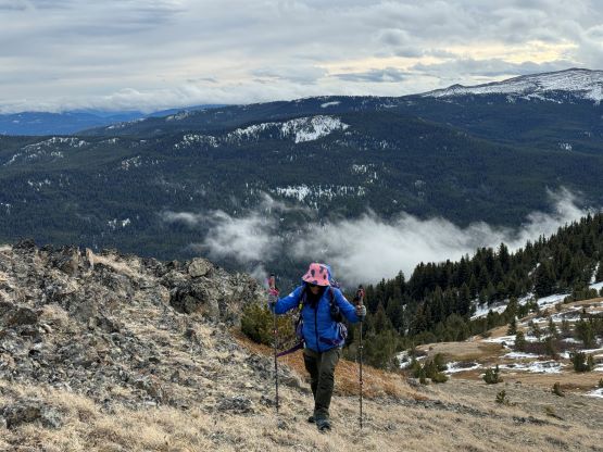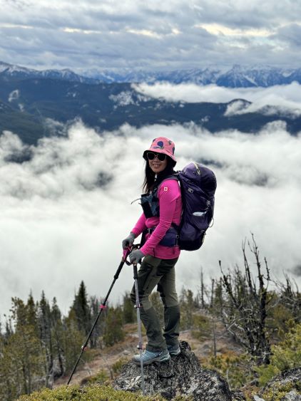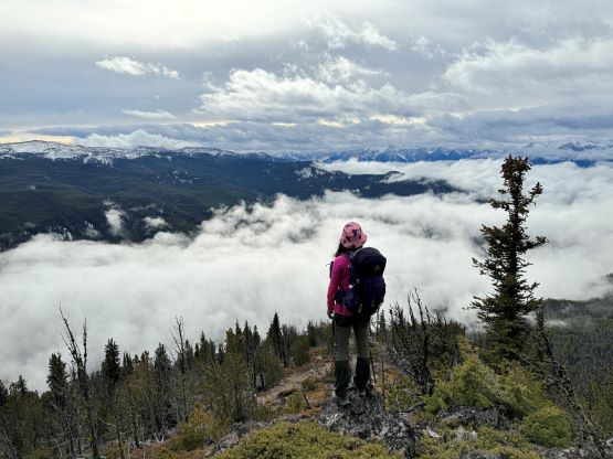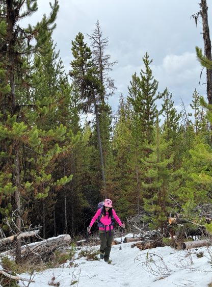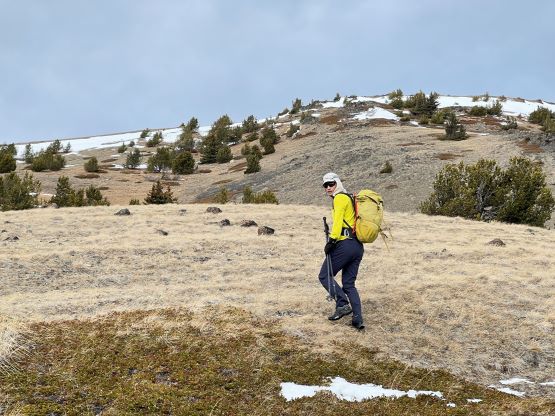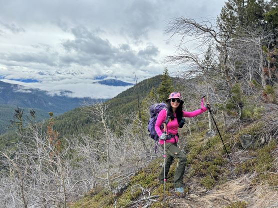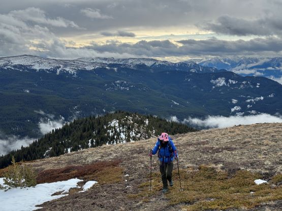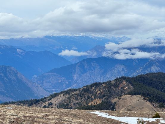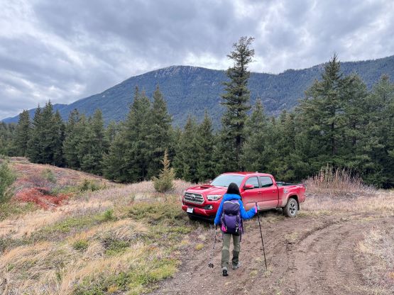 Moore Peak in the heart of Clear Range is relatively mysterious even though it boasts over 500 m prominence. I had noticed it many years ago by doing other objectives in the general area, but I could not find any “beta” on the internet. An unofficial trail that goes next to Frantzen Creek has been briefly mentioned on bivouac.com but it lacked any form of certainty and back in the days that seemed to be the only trail that goes somewhat close to the peak. Thankfully it’s the Gaia’s era nowadays and the “Peanut Lake trail” originated from Fountain Valley had popped onto the topographic maps and I immediately thought that to be the perfect way to approach Moore Peak. To my surprise this trail has some reviews on AllTrails and that helped to confirm the decision. The right window happened on this Sunday when the weather pushed me to go to the rainshadow zone. I invited a bunch of friends to come along due to the long drive, but in the end only Kate signed up. Kate was able to leave home on Saturday evening so I decided for us to car-camp in order to catch more hours of sleep.