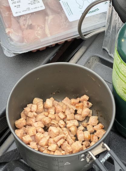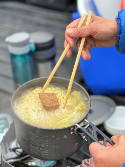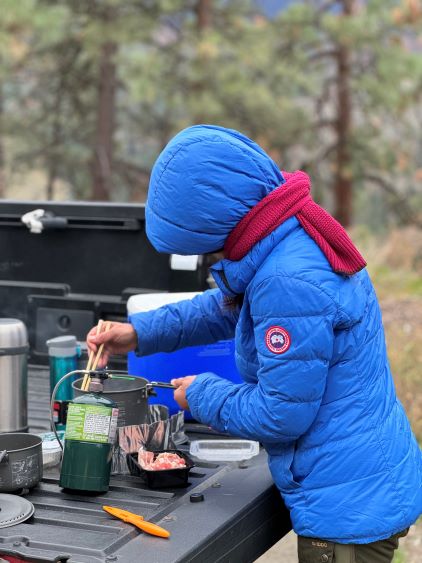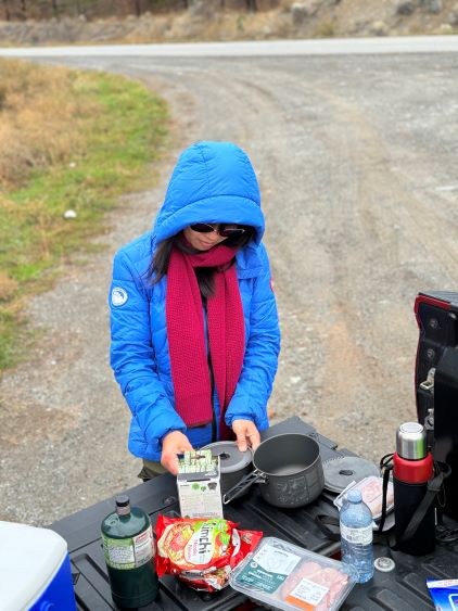Due to the cold winds we had to retreat immediately after taking in enough of the views. The plan was to descend the exact same path that we took on the way up. It was disorienting in the forest so I made sure to check the GPS screen regularly and we only got off track for a brief moment near the very bottom. We took the last energy break and then dashed out in a single shot, jogging some of the trail sections. Our round trip time was under 7 hours on a leisure pace so Moore Peak was overall not as difficult as I thought. En route back home we stopped not far from Lytton to cook our own dinner. Kate had brought a lot of camping stuffs so we might as well use them.