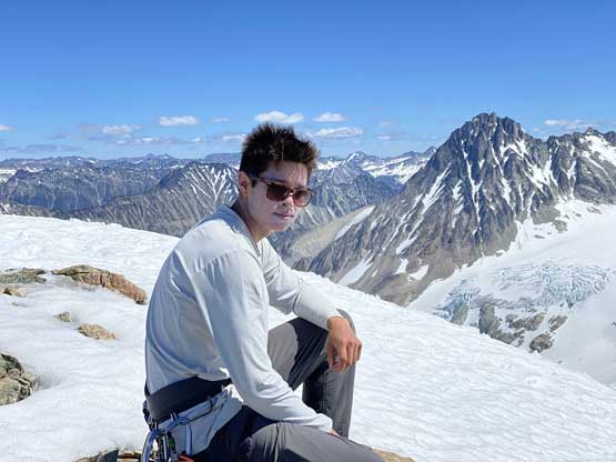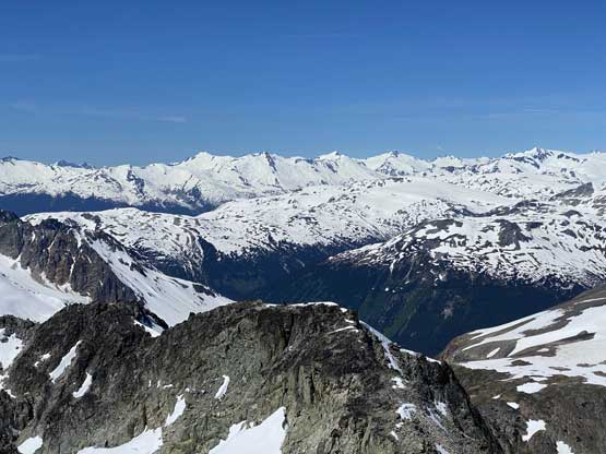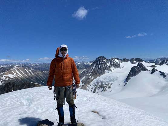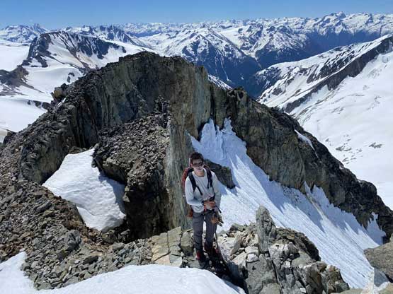 From Icemaker/Guthrum col the ascent of Mt. Guthrum was nothing more complicated than a simple plod although the elevation gain was bigger than I thought. We plodded for quite a while and the post-holing was pretty terrible on shallow areas near the rocks. About halfway up we gave up on the snow and hopped onto the rocky ridge. We then scrambled on the ridge but had to traverse some easy snow near the very top.