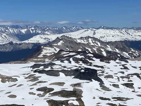 From Icemaker/Guthrum col the ascent of Mt. Guthrum was nothing more complicated than a simple plod although the elevation gain was bigger than I thought. We plodded for quite a while and the post-holing was pretty terrible on shallow areas near the rocks. About halfway up we gave up on the snow and hopped onto the rocky ridge. We then scrambled on the ridge but had to traverse some easy snow near the very top.