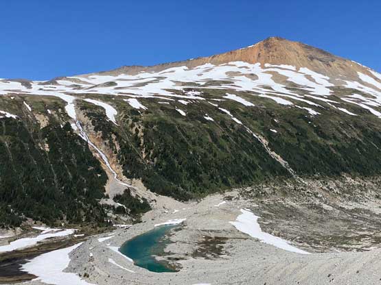 A cool tarn right at Athelney Pass with Ochre Mtn. behind