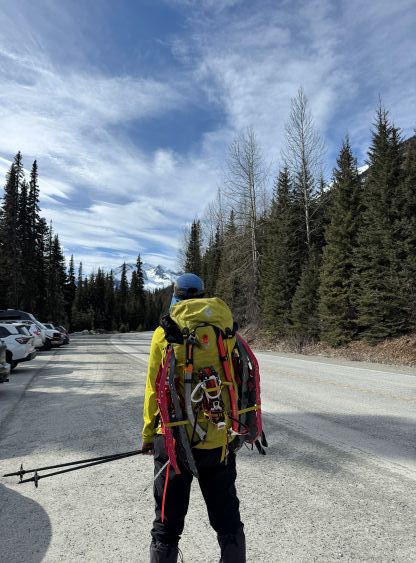 Instead of waking up at 1 am and pulling the “all-nighter” like I used to do with other people I thought it would make much more sense for us to car-camp. I also somehow managed to finish work much earlier on Friday that we even earned ourselves time to have dinner in the city together before driving north. We even stopped for an hour in Squamish’s McDonald’s to catch up Clair’s design project. We eventually got to the trail-head at 11:30 pm and the alarm was set at 3 am. Unfortunately I didn’t manage to quite “fall asleep” but that was fine. In terms of the gears I decided to bring two ice axes each, steel crampons and a 30 m rope in case Clair needed some extra sense of security on the climb. This turned out to be a great decision. I could not recall Mt. Matier being “difficult” nor “exposed” but it was almost 10 years since I did it and I also climbed it in a period of life when I simply didn’t give a fuck about anything. At the time of writing this trip report I thought this climb was not trivial and was quite a bit harder than what I remembered.