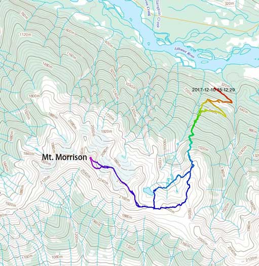 There are a whole bunch of peaks named “Mt. Morrison” out there in Canada and this is the one on Ryan River – Lillooet River divide not far from Pemberton Icefield. This is an area that sees very few visitors despite the close proximity to Pemberton and the main logging roads in Upper Lillooet Valley mainly due to the access logistics. Tremendous amount of elevation gain with at least some degree of bushwhacking is required no matter what, and then thank to the deactivation of Ryan River Road the access has become even harder these days. The peak itself isn’t even a major summit. But for hardcore peak-baggers a rarely-ascended peak such as Mt. Morrison does make a decent prize.
