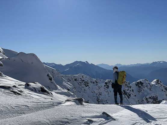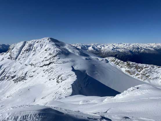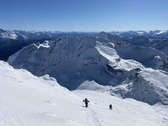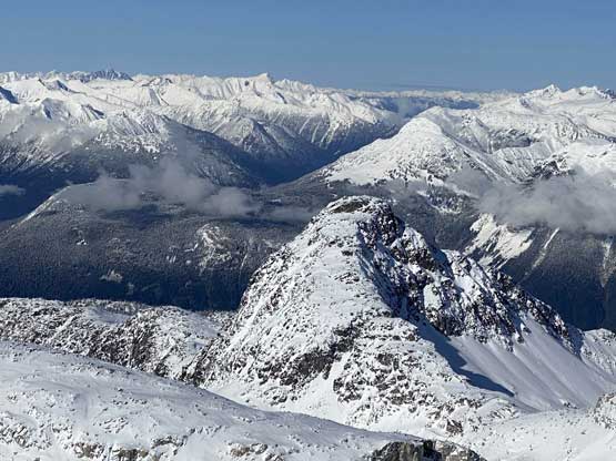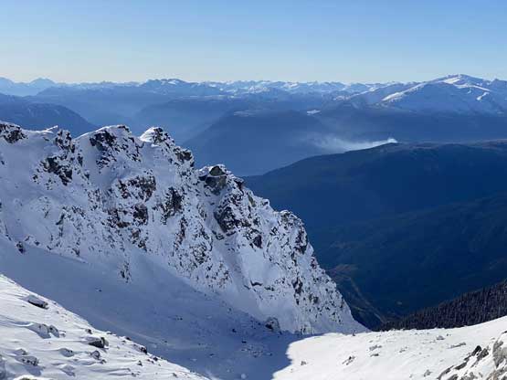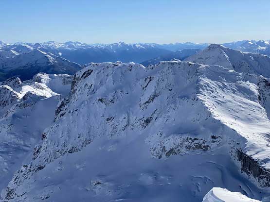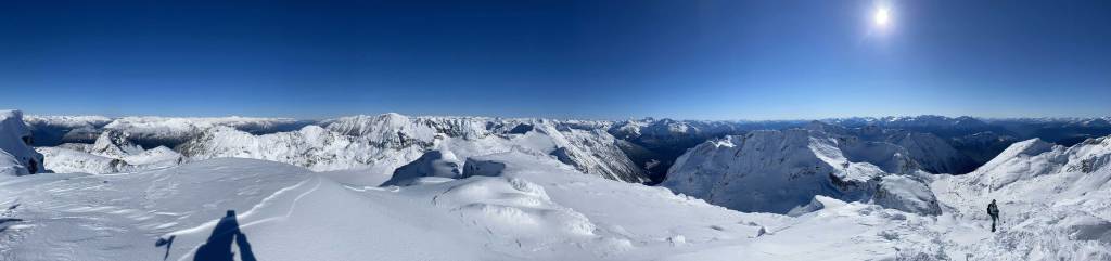 Mt. Olds is one of the taller summits in the Place Glacier Group not far from Pemberton. This peak is a bit overshadowed as it locates right next to the highest peak in this area – the unofficially named “Mt. Oleg”. Mt. Olds is difficult to access and because of that, it’s rarely done as a stand-alone objective. Mel, Ben, Elise and I did this peak as a side product of Mt. Oleg’s ascent. The two peaks are too close to each other such that not bagging them in the same trip would be a real shame for someone like me aiming to bag all of the named summits. We approached Mt. Oleg via a new route and although short, it was not the most pleasant. We encountered hours and hours of bushwhacking in dead-falls and consistent route-finding and scrambling through snow-covered bluffs. From Oleg/Olds col we also noticed the west ridge of Mt. Olds was too snowy to attempt. The alternative plan was the south ridge, but to get there we had to continuously lose elevation for another 150 meters.
