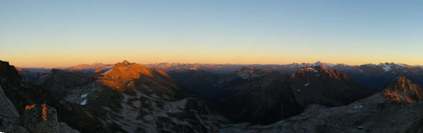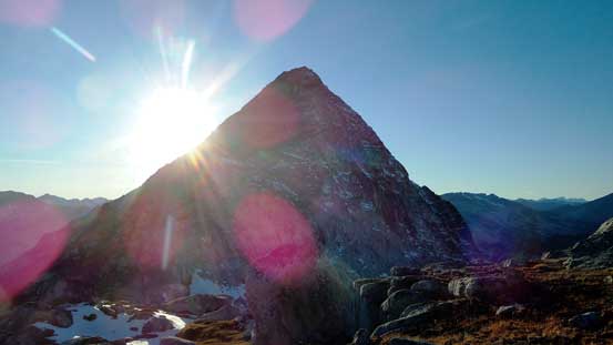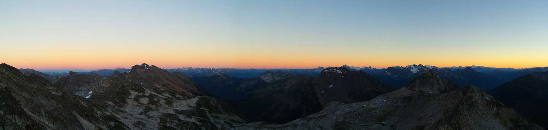 The shortest way to get back to camp was descending the S. Ridge. We had no beta about that route but based on earlier observation we figured it’d go just as the E. Ridge. So down we went. There’s one difficult rock band that Ben and I down-climbed head-on while Alex and Dean chose a line further to the down-climber’s right (which was not easy neither). After that it’s basically an easy stroll back (although the boulders did feel very tedious after a long day). Watching sunset high up on the ridge was surely a bonus with incredible vistas towards all directions.