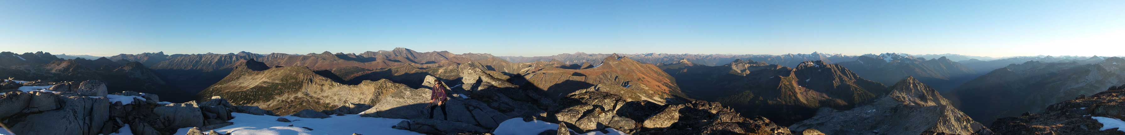 Mt. Taillefer is one of the peaks accessible from upper Phelix Creek about 1 hour drive north of Pemberton. This peak itself can be easily done as a day-trip from the logging road but Alex, Dean, Ben and myself did it in 2 days in combination with the other objectives nearby. Earlier in the day we’d already bagged Mt. Weinhold. And now with only about 1 hour’s daylight time we were hurrying up to get up Mt. Taillefer before sunset.