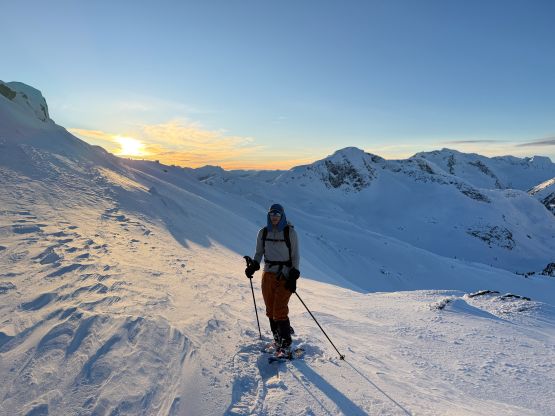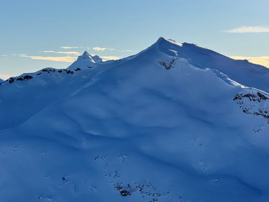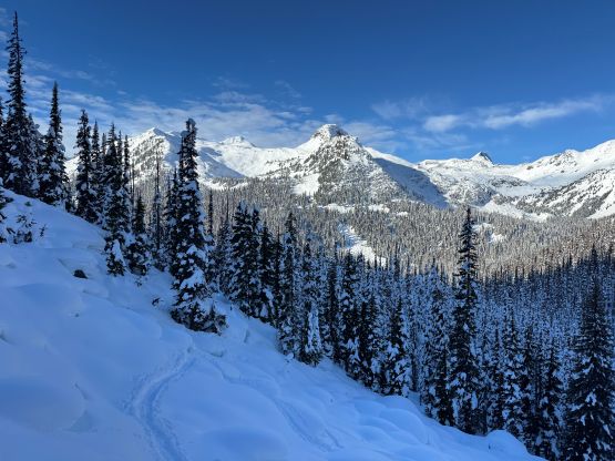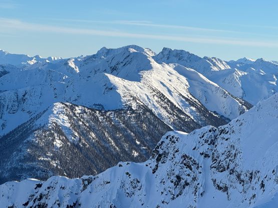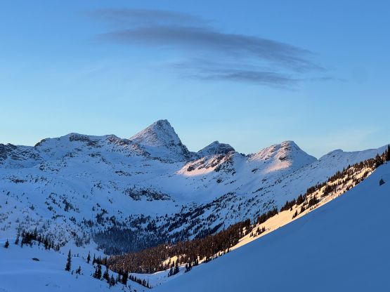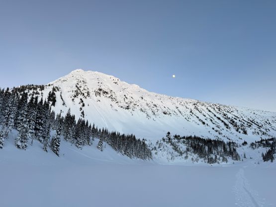 “Niche Peak” requires one to ascend/traverse some steep slopes if done in winter conditions, so I reserved this objective for a day with the “green brick” forecast. This happened on the last day of 2025 and Erica was easily convinced to join. There had been one BCMC trip report in 2023 for reference, but my plan was to use a completely different approach by traversing over the north side of Mt. Rohr. The ascent of “Niche Peak” via the south face ramp would be the same, so their trip still helped our planning. We decided to carry ice axe and crampons but ended up doing the entire ascent and descent on snowshoes. Due to the cat I couldn’t leave home until 6:30 am so we were looking at starting at around 10:30 am, which was a tad bit late for an exploratory objective in December, but that’s fine.