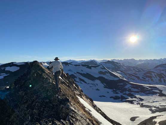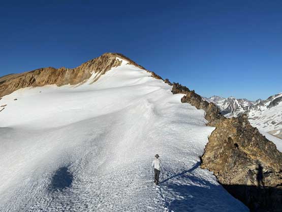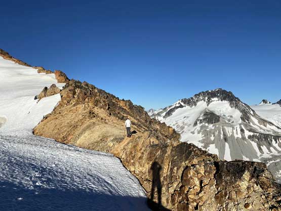 The scrambling on the west ridge was actually quite fun with some moderate exposure in some spots. We bypassed some sections on the sides and stayed tip-toeing on the ridge crest in other spots. The bypass on climber’s left on snow was all smooth going. The ridge did seem to drag on for a long while but at least the views were ass-kicking. This peak had my favourate views among the five we did in this trip.