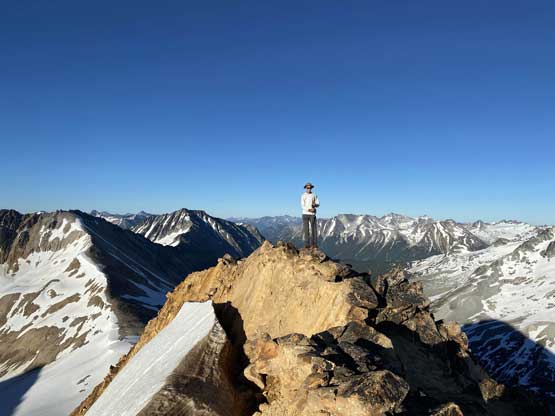 The scrambling on the west ridge was actually quite fun with some moderate exposure in some spots. We bypassed some sections on the sides and stayed tip-toeing on the ridge crest in other spots. The bypass on climber’s left on snow was all smooth going. The ridge did seem to drag on for a long while but at least the views were ass-kicking. This peak had my favourate views among the five we did in this trip.