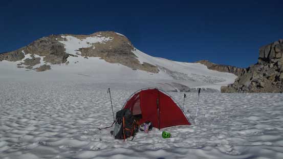The access has gone some significant changes over the past decade thank to the deactivation of some logging roads. A critical bridge was either pulled or washed out but then there’s a new trail being cut from spur roads branching off from the Lillooet South FSR. For most parties it takes a full day of hiking to reach Harrison Hut and from there Overseer Mountain can be done as a day-trip. For Adam (Gimplator) and myself that would be too lame as a plan. After some detailed research we concluded it’s possible to bag everything in this area over the course of two days by making a loop traverse. On the first day it only took us 5 hours to reach Harrison Hut. We skipped the hut as it’s too low to be used as a base camp so carried on, up and over Frozen Boot. And then we ascended Zygo Peak and Madhorse Mountain to make the full use of that day. The camp on Madhorse Glacier was cold but the views were dramatic.