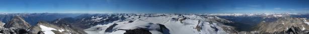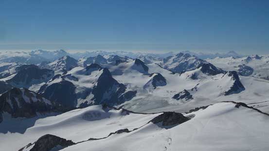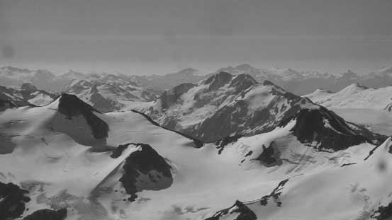 Not far from the VOC cabin Harrison Hut sits the highest peak on Pemberton Icecap and therefore the status of Overseer Mountain does not need a lot of introductory. This is also included in Matt Gunn’s Scrambles in Southwest British Columbia and draws significant attention from everybody, whether you are weekend-worrier scramblers, explorers, skiers or even snowmobilers. It also draws attention from the American peak-bagging community because this peak is an “ultra” (a peak with more than 1500 m clean prominence). The standard route is mostly a Class 2 or 3 scramble on broken granite with an easy glaciated approach, but the access is what deters most from planning this trip.