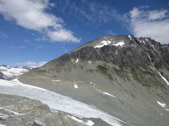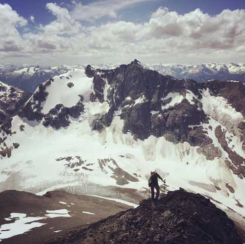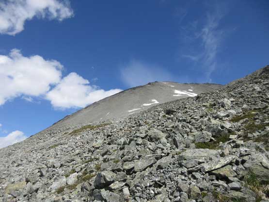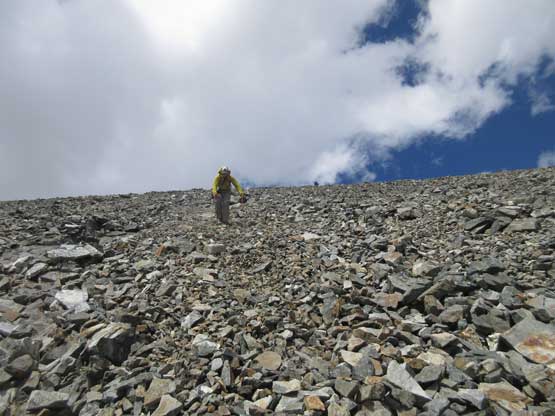 The ascent on Sessel’s south face can be broken down into three stages. The first stage was quite steep and very loose and involved ascending a rib feature with a bit of hands-on scrambling at places. The second stage was flat and in earlier season I think snow would greatly speed things up, but not for us as we didn’t have that much snow to take advantage of. For the last third I stuck on climber’s left side to ascend the ridge which offered some more class 2 scrambling and better views than the face. In the end it was 800 vertical meters on scree and took at least 2 hours out of us. It’s one of those slogs that kept me looking at the GPS again and again but never seemed to get any closer….