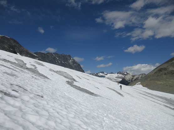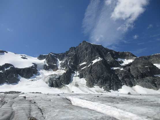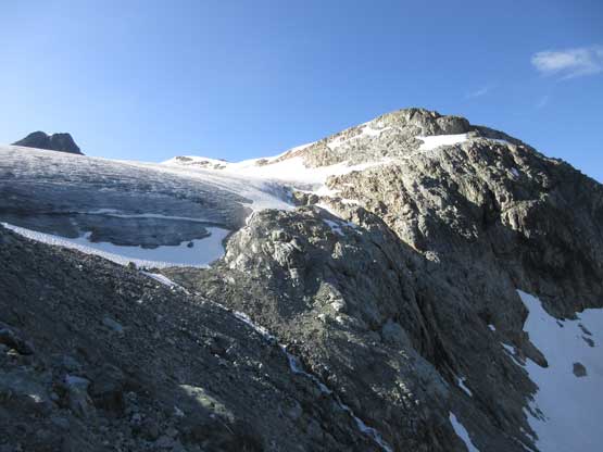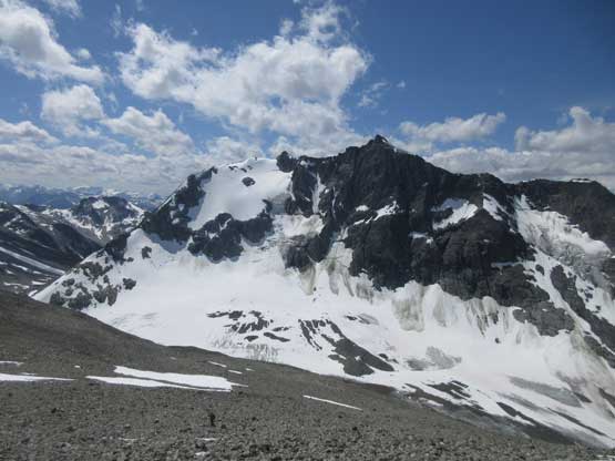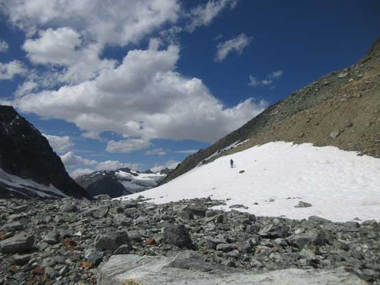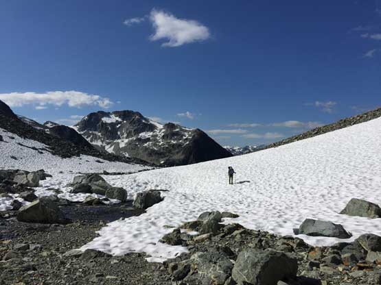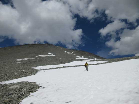The view from the summit was worthwhile though so we did spend a long break there soaking in the experience. On the descent I went for the face instead of retracing the ridge in search for lingering snow patches. The upper face was super shitty to descend with a ton of loose scree on a hardpacked base that reminded me the ol’ Canadian Rockies scrambles. The snow patches turned into snow fields upon getting closer and did speed our descend down the middle third, but of course the lower third was just as shitty as the upper third and none of us enjoyed it, not at all.. Once at the base we took another long break before committing to the glacial traverse back to the camp.