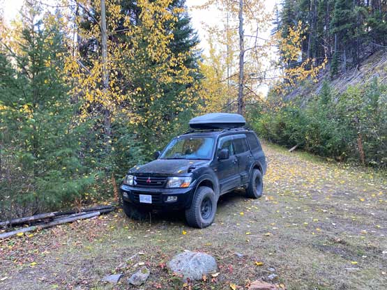 It seems that most parties use Jim Creek to the west to access (at least on the internet) but that approach requires a nasty traverse and/or elevation loss on the east side of the col immediately south of the peak. After evaluating the maps I decided to take the Brett Creek approach from the south which avoids any “class 3” or loose terrain. Sarah R. and I had been talking to get out over the weekend. I threw out a few suggestions and I was surprised that she didn’t rule out Shulaps Peak due to the lack of technical climbing. Vlad also messaged me and I was also surprised that he wanted to join, as a day-trip to Shulaps Peak would require more driving than hiking, hence breaking his own “rule”. Sarah offered to take her monstrous truck imported in from Japan. There are three ways to get to the area and each has its own merits. I insisted to take Hurley-Carpenter route in favour of robustness but we talked about taking the Mission Ridge-D’Arcy route (shortest) on the way back home to scout it out for future references. While driving northwards I ordered some burritos from Sunny Chiba in Squamish for dinner. I forgot to buy sandwiches for breakfast but I did bring a stove and some spicy ramen. The drive was overall uneventful and as expected and Sarah drove generally faster than me. We were even able to drive up the narrow spur road at the start of Brett Creek trail to shave off at least half an hour’s work in the morning. This spur road definitely required a high clearance and 4×4 vehicle.