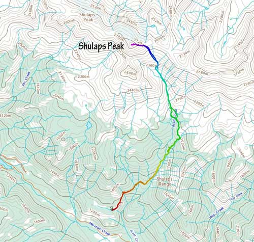 Shulaps Range occupies a large area immediately to the north of Carpenter Lake and east of the Chilcotin Mountains and Shulaps Peak is the highest in this area. The official name is misplaced on the maps as it’s well accepted that the high point of this range, about a kilometer to the south-east is the “true” Shulaps Peak. It’s unfortunate that most of the peaks in this range, Shulaps Peak included, are broad and dome-shaped that offer no technical difficulty whatsoever. The biggest attraction of this peak might actually be the prominence (over 1300 m) and because of that, I’ve seen Vancouver-based, or even internationally-famed peak-baggers coming from abroad to claim this summit. The prominence is also the primary reason why I planned this trip, but isn’t the sole reason. For once in a while I would like to pay a visit to this area despite the long and contrived drive, mostly for a change of scenery.