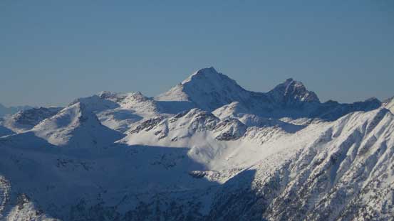 Over the past year or so I’ve heard more than just a few good stories about an area called Steep Creek accessing from the south shore of Duffey Lake. This is not an area famous for the alpine mountaineering opportunities, but rather for the endless skiing terrain it offers. Now I totally understand why. Given some stable conditions one can easily spend a week here skiing different steep slopes on each different day. “Steep Peak” is an unofficial name given to the highest peak directly south of James Bond Basin (Darkside Lake) at the head of Steep Creek. There’s some confusion regarding where exactly this peak is, and my reference is John Baldwin’s Exploring the Coast Mountains on Skis.