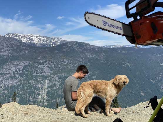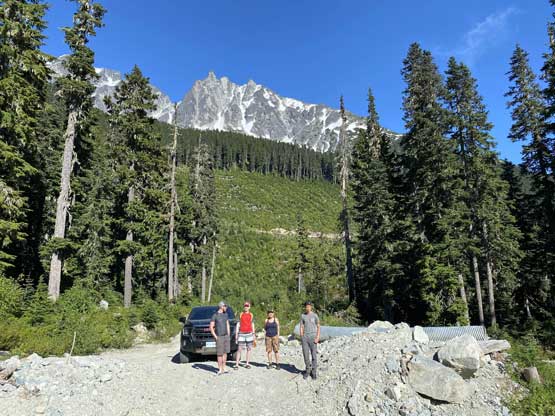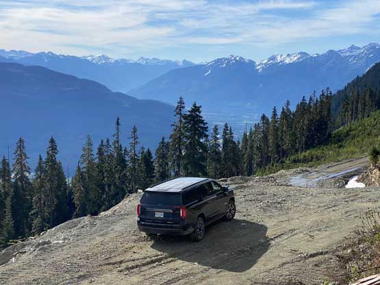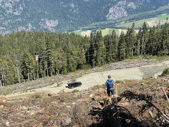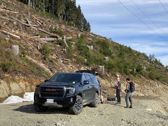 The next morning a total of 5 of us and a dog had gathered at Matt’s place – Brayden, Mark, Nolan, myself, Matt and Twig and an hour later we picked up Senay from Squamish. Another hour later we were in Pemberton driving up the Miller Bench Road. This road was steep but not very rough. The water bars did not impose any issue to Matt’s stock GMC Yukon that we were able to park at 1400 m with ease. We could have driven a little bit farther but I had a short-cut route in mind to save off some distance and to do that, we would have to park here.