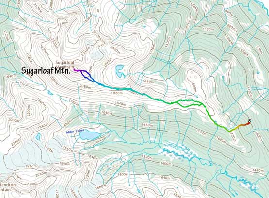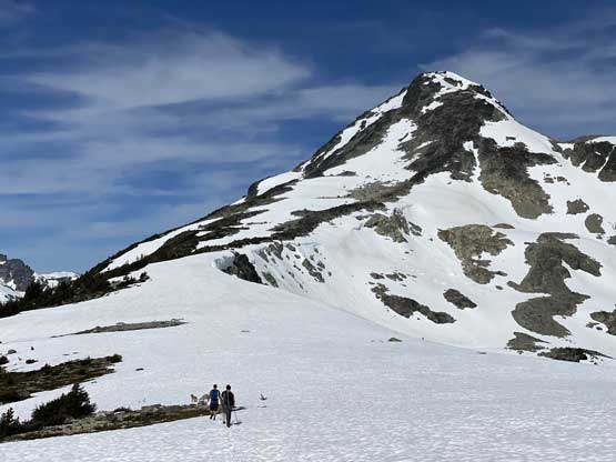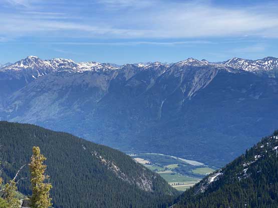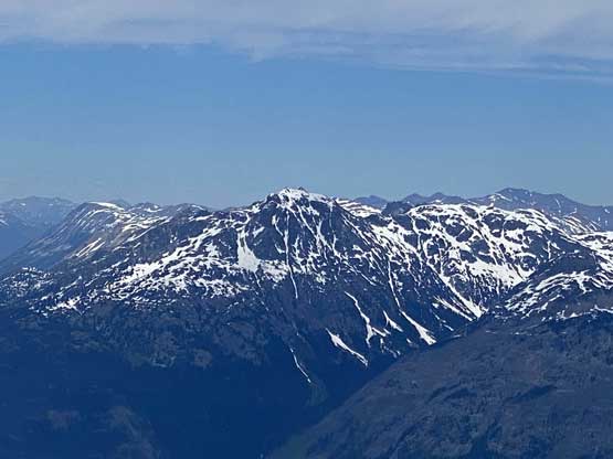 Sugarloaf Mountain is one of the taller summits that overlook Pemberton Valley and the summit is also very visible from the town of Pemberton. The long, broad and undulating SE Ridge offers an easy passage to the summit in all seasons. In winter and spring this is a popular sled-skiiing zone as indicated by the numerous huts built by snowmobilers. In summer time one can drive easily to 1400 m on Miller Bench Road with a 4WD vehicle and from there, the alpine can be easily accessed with minimal suffering. I had this objective in mind for years but my original plan was to do Sugarloaf Mtn. together with Mt. Ross as an overnight trip camping not too far below the summit on the SE Ridge but nobody was interested in Mt. Ross. I was more than ready to pull it off solo in my planned style but in the end I reluctantly agreed to just do Sugarloaf Mtn. as a day-trip and come back for Mt. Ross later, likely in a different year.