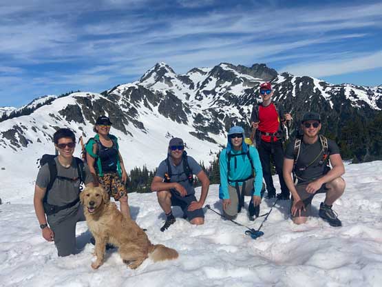 The next morning a total of 5 of us and a dog had gathered at Matt’s place – Brayden, Mark, Nolan, myself, Matt and Twig and an hour later we picked up Senay from Squamish. Another hour later we were in Pemberton driving up the Miller Bench Road. This road was steep but not very rough. The water bars did not impose any issue to Matt’s stock GMC Yukon that we were able to park at 1400 m with ease. We could have driven a little bit farther but I had a short-cut route in mind to save off some distance and to do that, we would have to park here.
