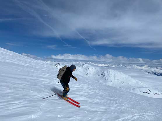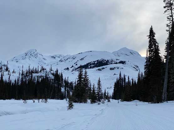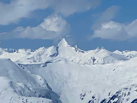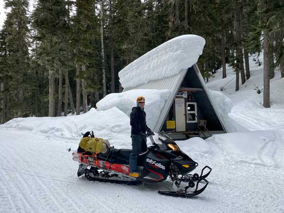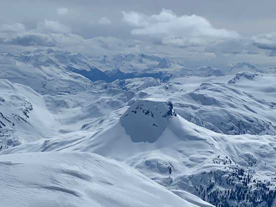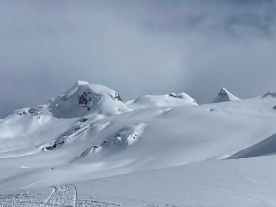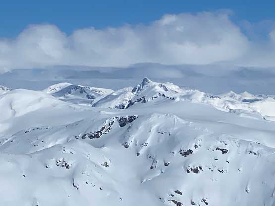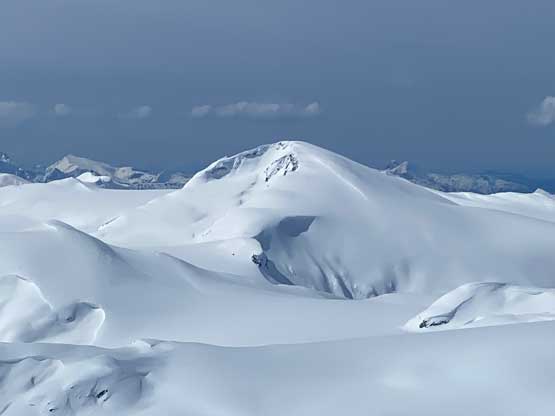 “Torah Peak” is the unofficial name given to a deep and remote summit in the heart of Pemby Icecap that also boasts over 300 m prominence. This peak is almost entirely glaciated on all sides. Using a snowmobile to sled a few hours in from Rutherford FSR is pretty much the only logical way of getting in. With some experience one can sled over 50 km each way and get to within an hour or two’s skinning to the summit of “Torah Peak”. There are some other methods of getting in for those without a snowmobile including a traverse up and over Exodus Peak from the south, but all of those would be multi-day fairs. I’m only aware of one group that summitted this peak sans snowmobile.