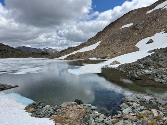 Not doing much lingering I quickly made my way down, and reversed what exactly I did on that crux zone. I then plunged onto the snow slope and made some quick work down to the upper lake. To my surprise I got down to the upper lake quicker than Holly. Holly debated for a while but eventually opted for a swim in the brutally cold water. She only dipped in for 5 seconds but that still counted. We then made a leisure descent and concluded the round trip in 7.5 hours taking in account of everything. The drive home afterwards was tiring and long.